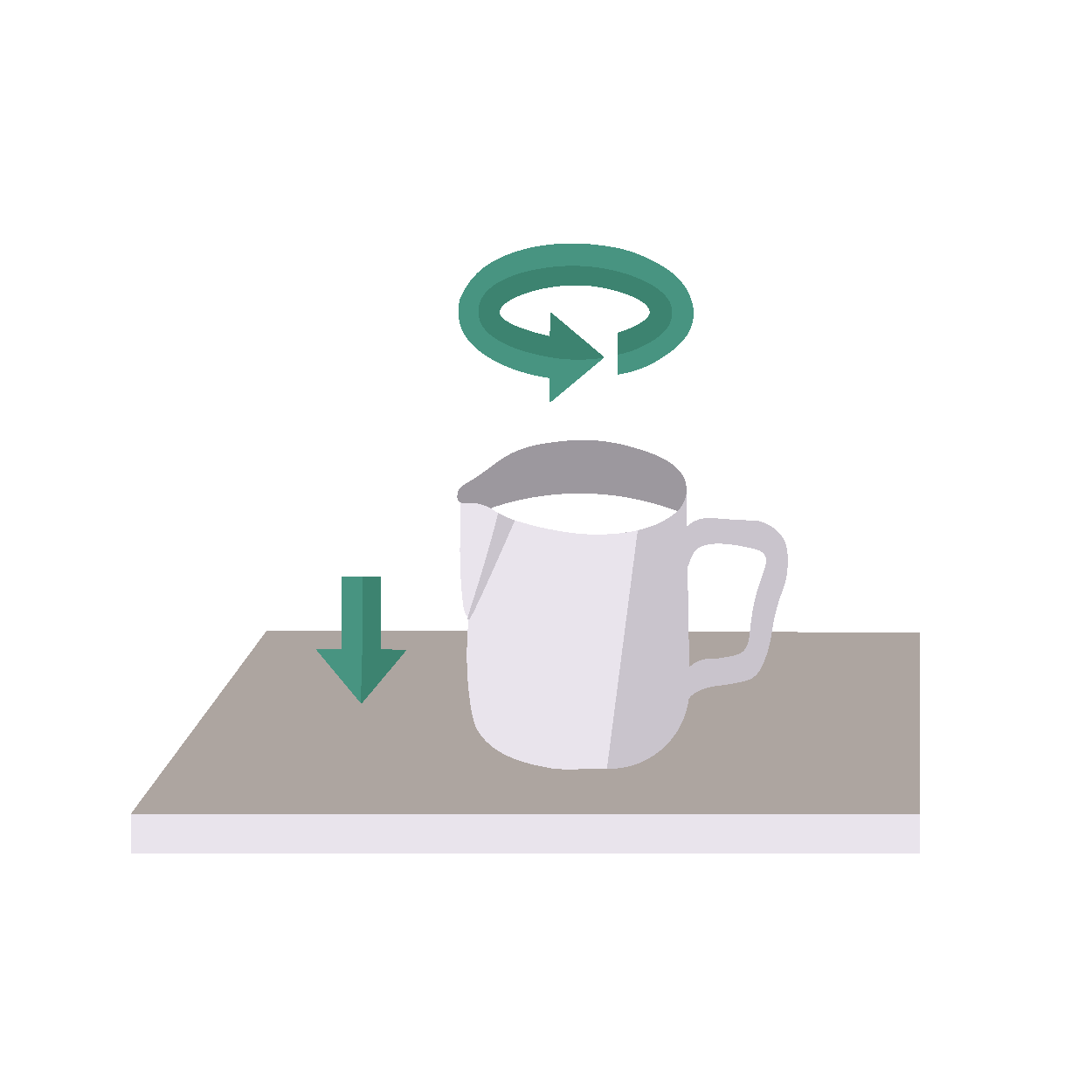 Bank din kande let mod bordet og slyng mælken lidt i kanden for at fjerne store luftbobler og ensarte skummet.